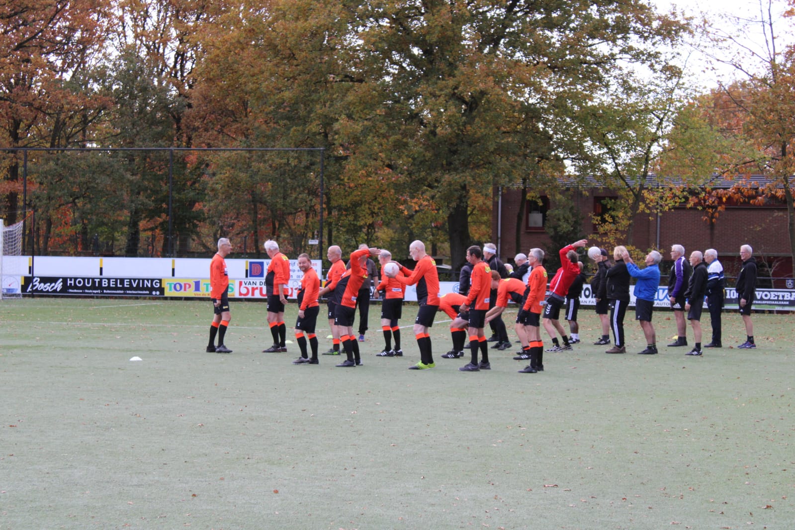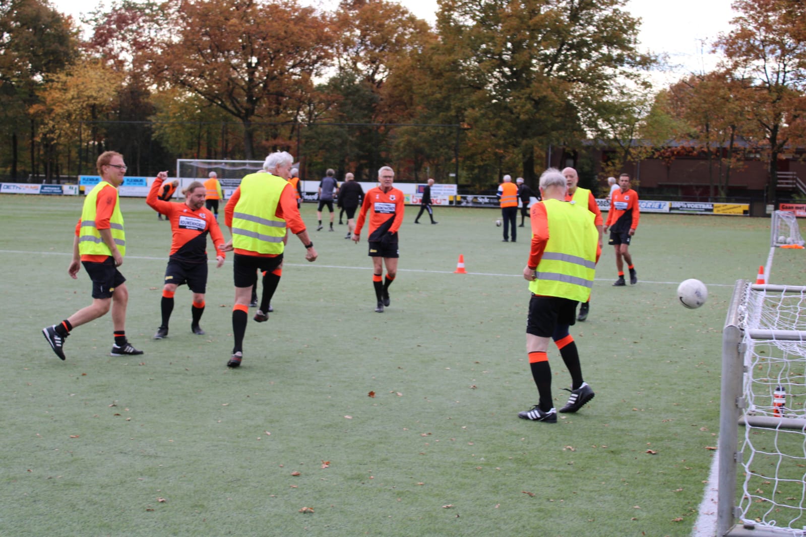 Door het grote aantal spelers bij beide teams konden er twee wedstrijden gelijktijdig worden gespeeld. De sfeer was gemoedelijk en sportief. Hans Worm kroonde zich tot topscoorder met 5 doelpunten, gevolgd door Joris Hoogstraten met 2 treffers. Onze sterspeler Dick Schenk had zijn dag niet helemaal, mogelijk wat zenuwen, maar liet toch zijn klasse zien en ging met een tevreden gevoel terug naar Apeldoorn.