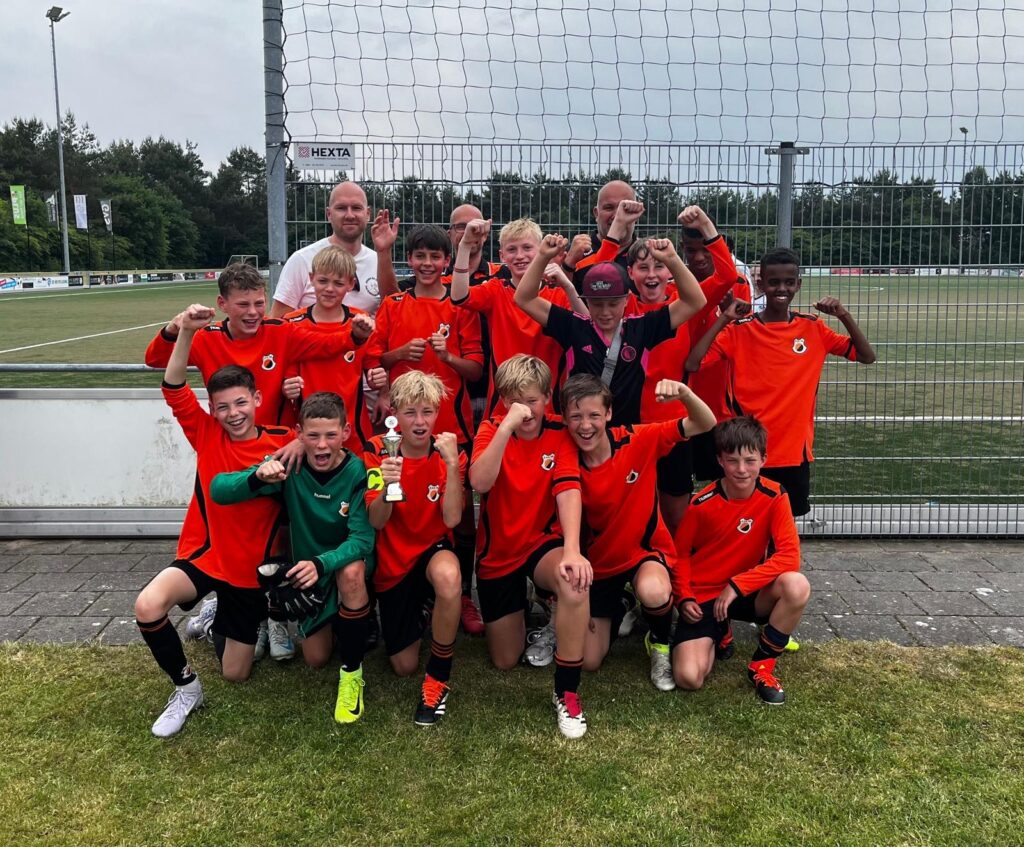 Bij de prijsuitreiking kreeg aanvoerder Ronan de beker uitgereikt voor de 1e plek waarna het hele team de beker omhoog kon houden.