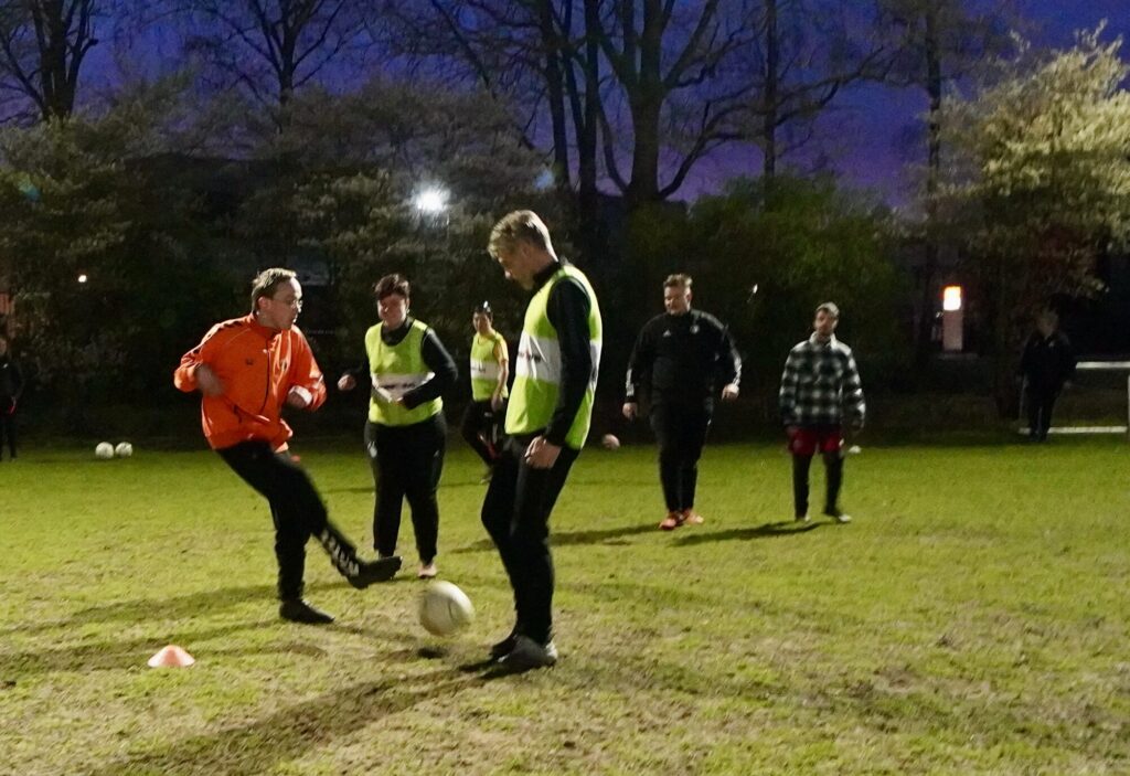 De spelers verzamelen zich elke woensdagavond om kwart voor zeven op Sportpark Zevenhuizen, het complex van ZVV. Bij het betreden van het terrein bloeit meteen het gevoel; ik moet voetballen! Het team is vandaag niet helemaal compleet vanwege blessures of andere afspraken. Daarom trainen de G2 en G3 vanavond samen.